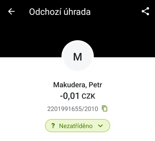 Poslat zprávupřidal/a skutečné jméno majitele účtu: Petr Makudera k bankovnímu účtu: 2201991655/2010