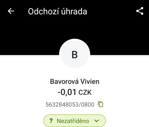 Poslat zprávupřidal/a skutečné jméno majitele účtu: Vivien Bavorová k bankovnímu účtu: 5632848053/0800