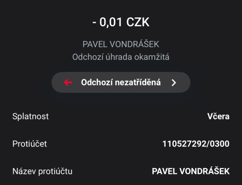 Poslat zprávupřidal/a skutečné jméno majitele účtu: Pavel Vondrášek k bankovnímu účtu: 110527292/0300