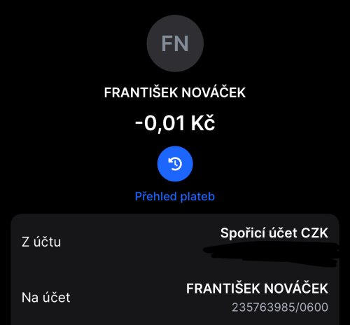 Poslat zprávupřidal/a skutečné jméno majitele účtu: František Nováček k bankovnímu účtu: 235763985/0600