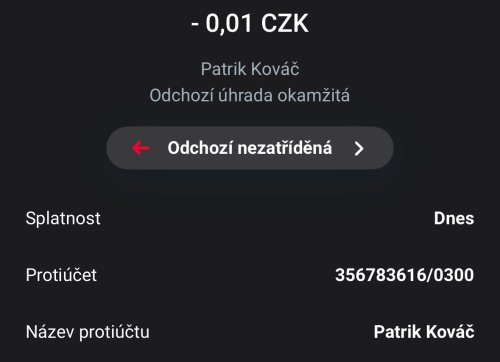Poslat zprávupřidal/a skutečné jméno majitele účtu: Patrik Kováč k bankovnímu účtu: 356783616/0300