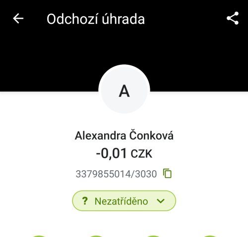 Poslat zprávupřidal/a skutečné jméno majitele účtu: Alexandra Čonková k bankovnímu účtu: 3379855014/3030