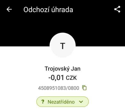 Poslat zprávupřidal/a skutečné jméno majitele účtu: Jan Trojovský k bankovnímu účtu: 4508951083/0800