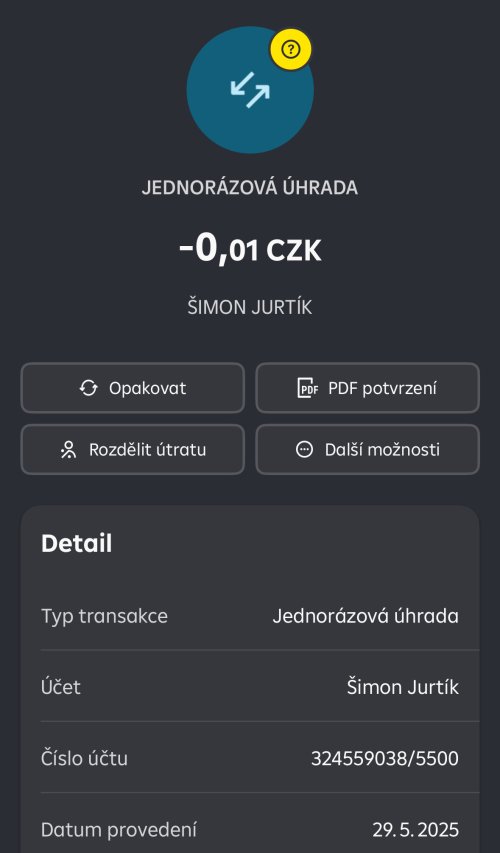 Poslat zprávupřidal/a skutečné jméno majitele účtu: Šimon Jurtík k bankovnímu účtu: 324559038/5500