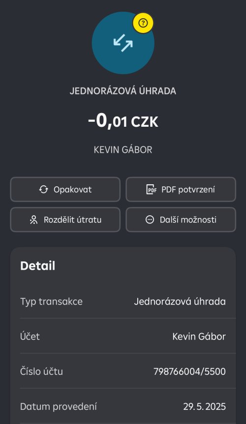 Poslat zprávupřidal/a skutečné jméno majitele účtu: Kevin Gábor k bankovnímu účtu: 798766004/5500