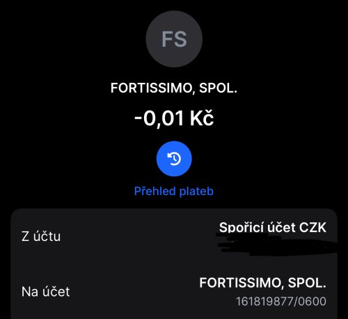 Poslat zprávupřidal/a skutečné jméno majitele účtu: Fortissimo Spol SRO k bankovnímu účtu: 161819877/0600