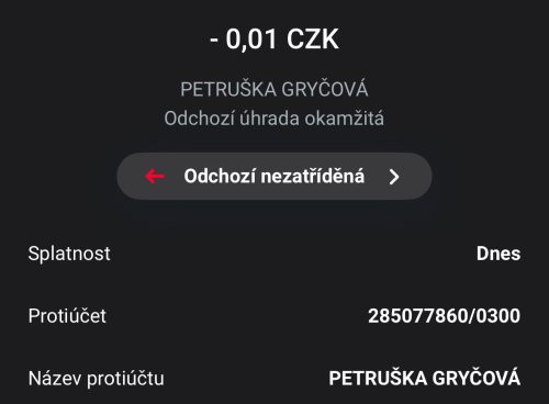 Poslat zprávupřidal/a skutečné jméno majitele účtu: Prtruška Gryčová k bankovnímu účtu: 285077860/0300