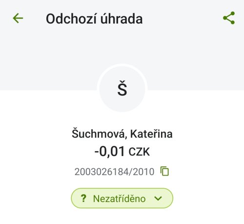 Poslat zprávupřidal/a skutečné jméno majitele účtu: Kateřina Šuchmová k bankovnímu účtu: 2003026184/2010