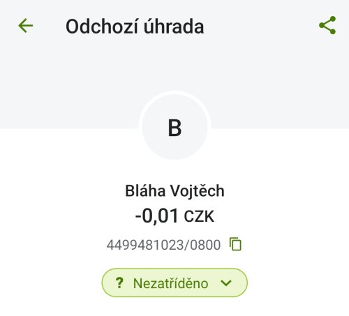 Poslat zprávupřidal/a skutečné jméno majitele účtu: Vojtěch Bláha k bankovnímu účtu: 4499481023/0800