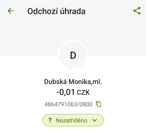 Poslat zprávupřidal/a skutečné jméno majitele účtu: Monika Dubská k bankovnímu účtu: 4864791063/0800