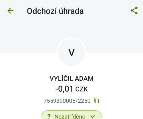 Poslat zprávupřidal/a skutečné jméno majitele účtu: Adam Vylíčil k bankovnímu účtu: 7559390005/2250