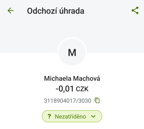 Poslat zprávupřidal/a skutečné jméno majitele účtu: Michaela Machová k bankovnímu účtu: 3118904017/3030