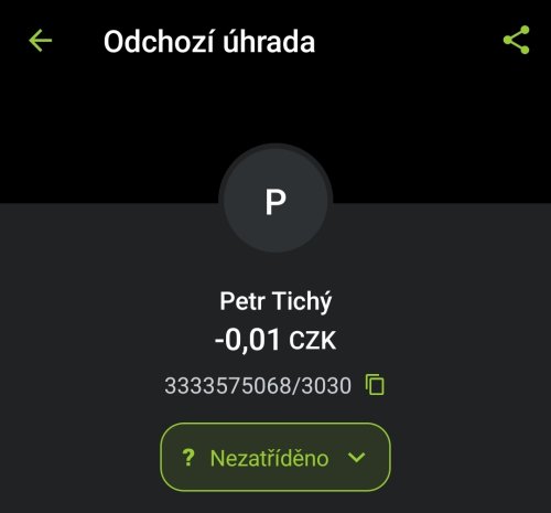 Poslat zprávupřidal/a skutečné jméno majitele účtu: Petr Tichý k bankovnímu účtu: 3333575068/3030