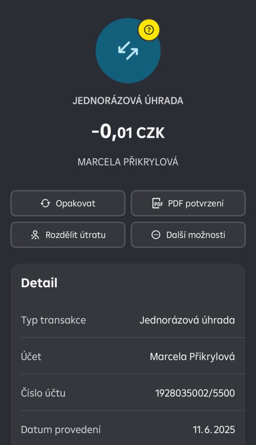 Poslat zprávupřidal/a skutečné jméno majitele účtu: Marcela Přikrylová k bankovnímu účtu: 1928035002/5500
