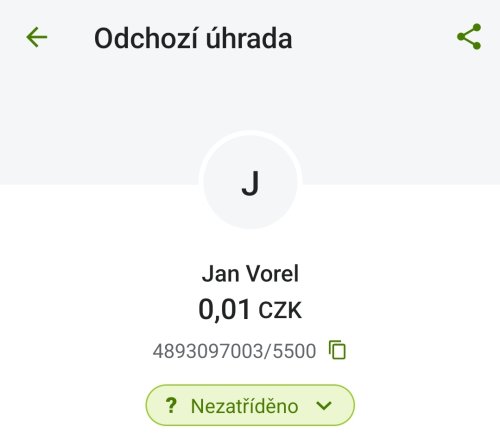 Poslat zprávupřidal/a skutečné jméno majitele účtu: Jan Vorel k bankovnímu účtu: 4893097003/5500