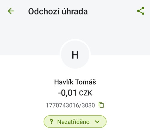 Poslat zprávupřidal/a skutečné jméno majitele účtu: Tomáš Havlík k bankovnímu účtu: 1770743016/3030