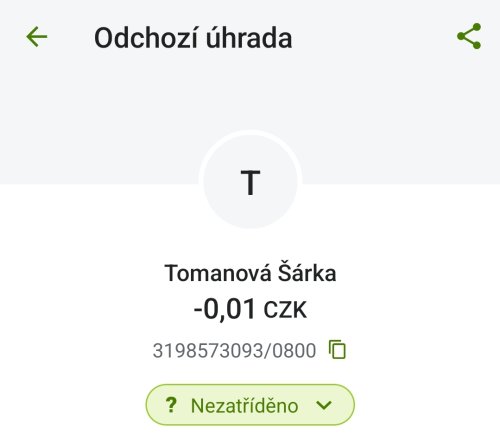 Poslat zprávupřidal/a skutečné jméno majitele účtu: Šárka Tomanová k bankovnímu účtu: 3198573093/0800
