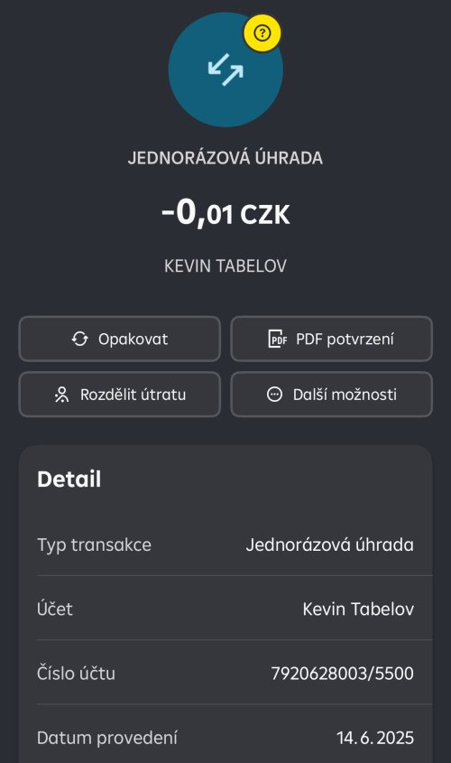 Poslat zprávupřidal/a skutečné jméno majitele účtu: Kevin Tabelov k bankovnímu účtu: 7920628003/5500