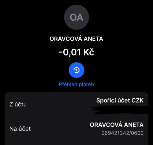 Poslat zprávupřidal/a skutečné jméno majitele účtu: Aneta Oravcová k bankovnímu účtu: 269421342/0600