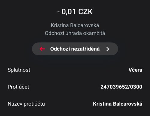 Poslat zprávupřidal/a skutečné jméno majitele účtu: Kristina Balcarovská k bankovnímu účtu: 247039652/0300