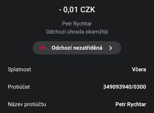 Poslat zprávupřidal/a skutečné jméno majitele účtu: Petr Rychtar k bankovnímu účtu: 349093940/0300