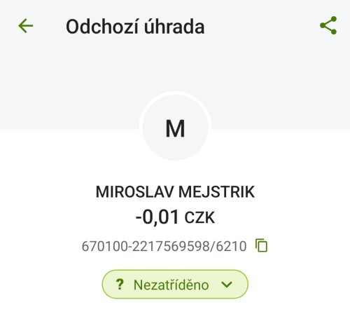 Poslat zprávupřidal/a skutečné jméno majitele účtu: Miroslav Mejstrik k bankovnímu účtu: 670100-2217569598/6210