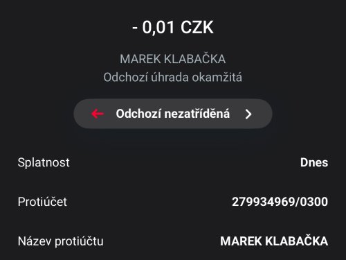 Poslat zprávupřidal/a skutečné jméno majitele účtu: Marek Klabačka k bankovnímu účtu: 279934969/0300