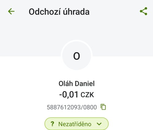 Poslat zprávupřidal/a skutečné jméno majitele účtu: Daniel Oláh k bankovnímu účtu: 5887612093/0800