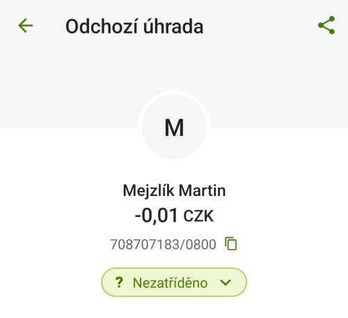 Poslat zprávupřidal/a skutečné jméno majitele účtu: Martin Mejzlík k bankovnímu účtu: 0708707183/0800