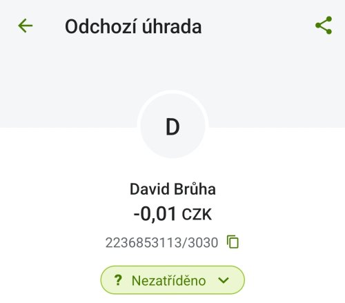 Poslat zprávupřidal/a skutečné jméno majitele účtu: David Brůha k bankovnímu účtu: 2236853113/3030