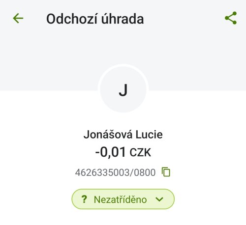 Poslat zprávupřidal/a skutečné jméno majitele účtu: Lucie Jonášová k bankovnímu účtu: 4626335003/0800
