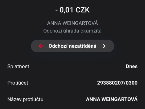 Poslat zprávupřidal/a skutečné jméno majitele účtu: Anna Weingartová k bankovnímu účtu: 293880207/0300