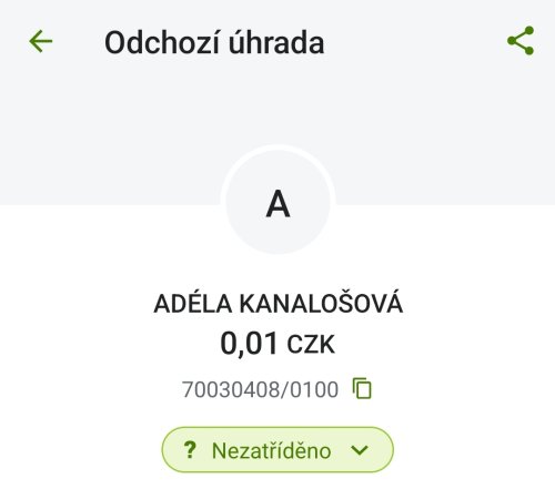 Poslat zprávupřidal/a skutečné jméno majitele účtu: Adéla Kanalošová k bankovnímu účtu: 70030408/0100
