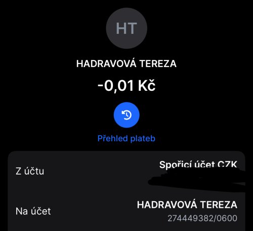 Poslat zprávupřidal/a skutečné jméno majitele účtu: Tereza Hadravová k bankovnímu účtu: 274449382/0600