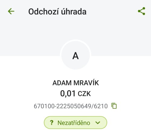 Poslat zprávupřidal/a skutečné jméno majitele účtu: Adam Mravík k bankovnímu účtu: 670100-2225050649/6210