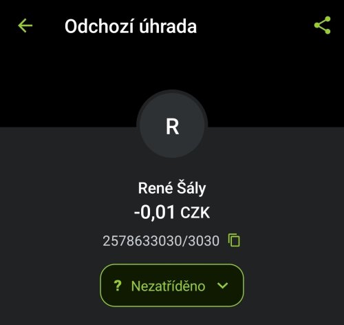 Poslat zprávupřidal/a skutečné jméno majitele účtu: René šály k bankovnímu účtu: 2578633030/3030