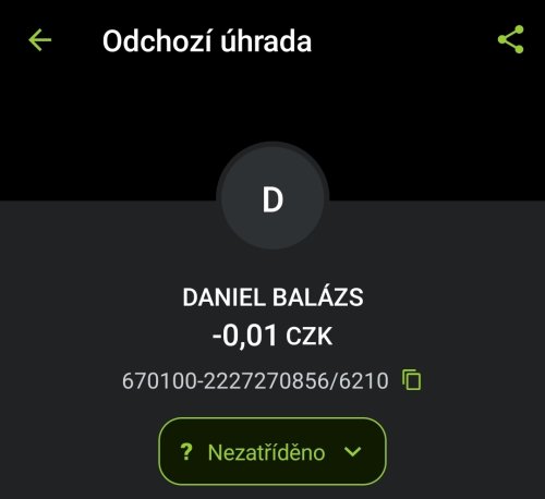 Poslat zprávupřidal/a skutečné jméno majitele účtu: Daniel Balázs k bankovnímu účtu: 670100-2227270856/6210