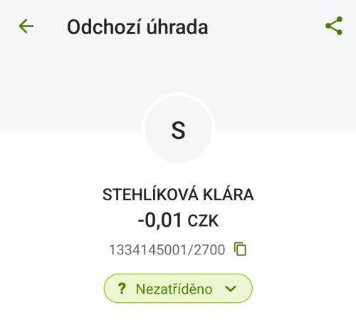 Poslat zprávupřidal/a skutečné jméno majitele účtu: Klára Stehlíková k bankovnímu účtu: 1334145001/2700