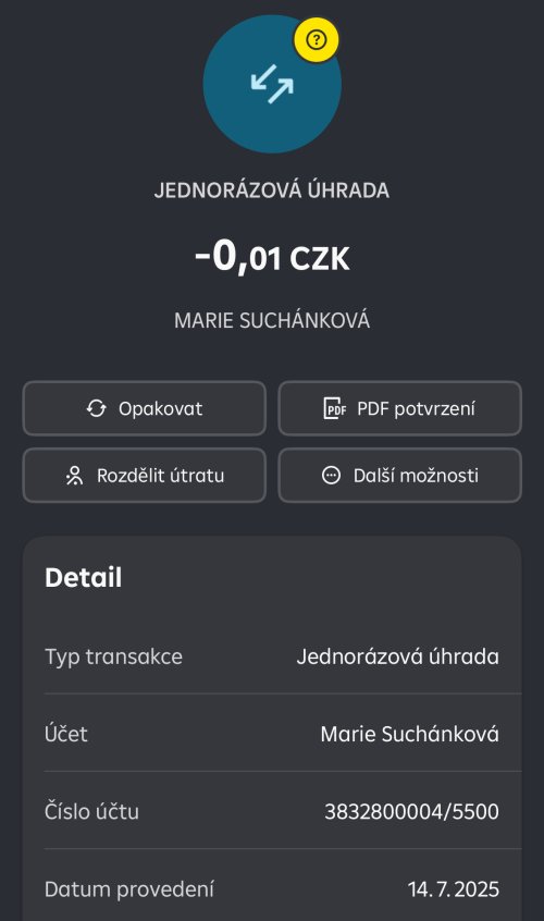 | 15. 07. 2025 | Online přes portál | 3832800004/5500 | 1000,- | - |