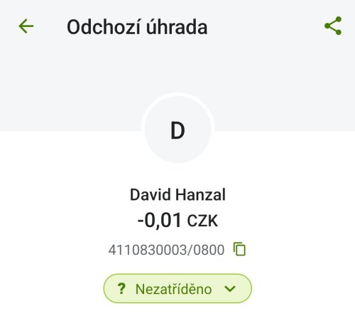 Poslat zprávupřidal/a skutečné jméno majitele účtu: David Hanzal k bankovnímu účtu: 4110830003/0800