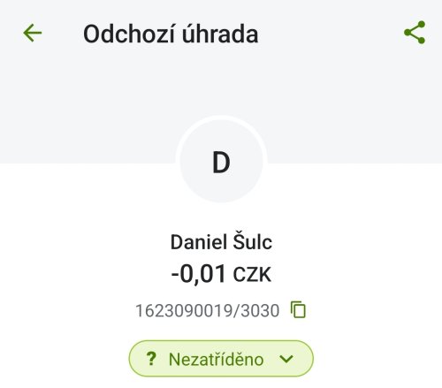 Poslat zprávupřidal/a skutečné jméno majitele účtu: Daniel Šulc k bankovnímu účtu: 1623090019/3030