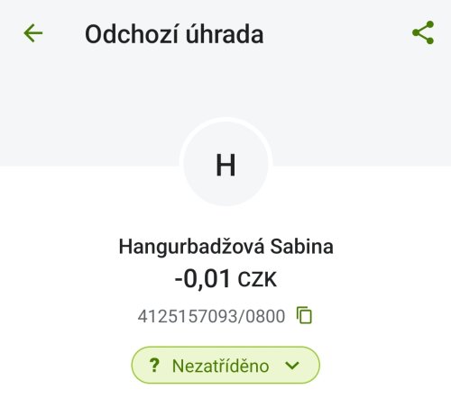 Poslat zprávupřidal/a skutečné jméno majitele účtu: Denisa Hangurbadžová k bankovnímu účtu: 4125157093/0800