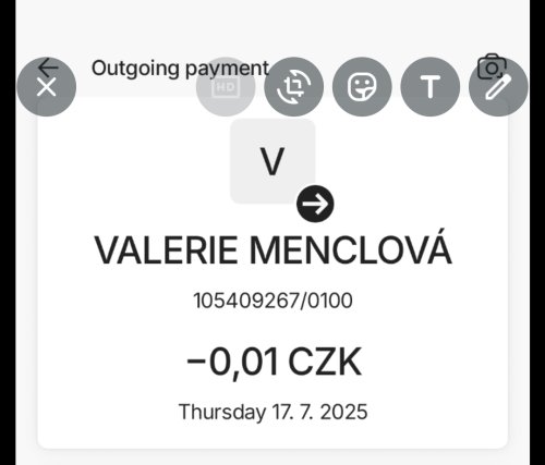 Poslat zprávupřidal/a skutečné jméno majitele účtu: Valerie Menclová k bankovnímu účtu: 105409267/0100