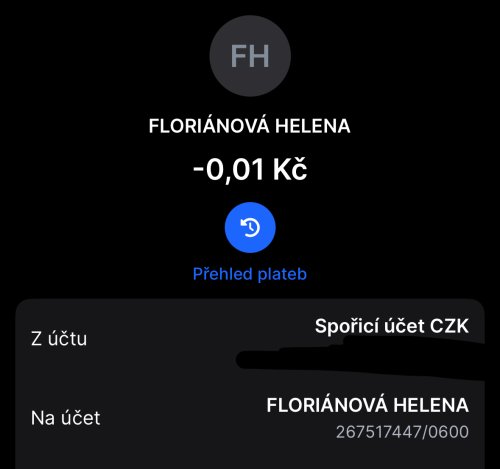 Poslat zprávupřidal/a skutečné jméno majitele účtu: Helena Floriánová k bankovnímu účtu: 267517447/0600