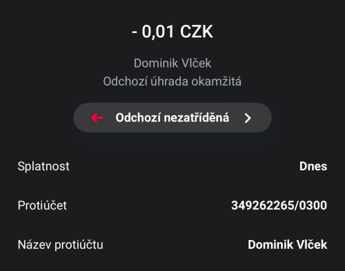 Poslat zprávupřidal/a skutečné jméno majitele účtu: Dominik Vlček k bankovnímu účtu: 349262265/0300