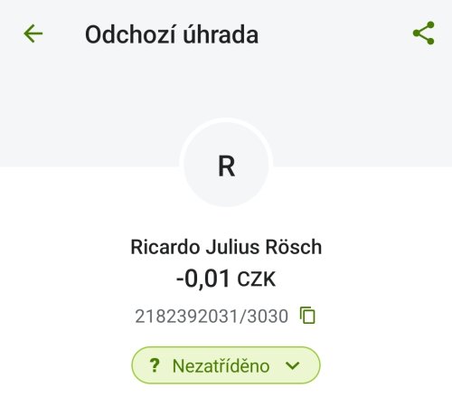 Poslat zprávupřidal/a skutečné jméno majitele účtu: Racardo Julius Rösch k bankovnímu účtu: 2182392031/3030