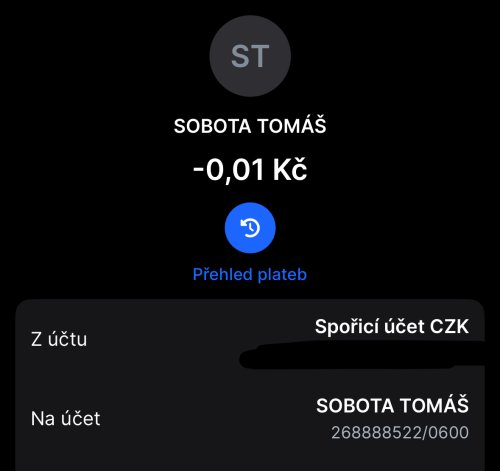 Poslat zprávupřidal/a skutečné jméno majitele účtu: Tomáš Sobota k bankovnímu účtu: 268888522/0600