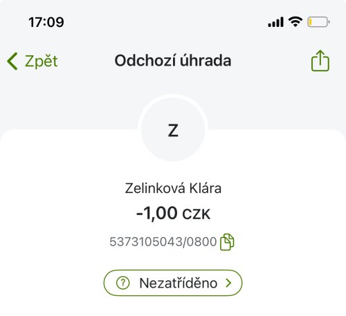 Poslat zprávupřidal/a skutečné jméno majitele účtu: Klára Zelinkova k bankovnímu účtu: 5373105043/0800