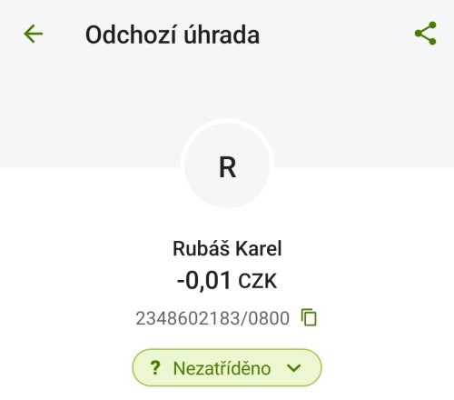 Poslat zprávupřidal/a skutečné jméno majitele účtu: Karel Rubáš k bankovnímu účtu: 2348602183/0800