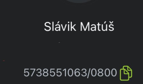 Poslat zprávupřidal/a skutečné jméno majitele účtu: Slávik Matúš k bankovnímu účtu: 5738551063/0800